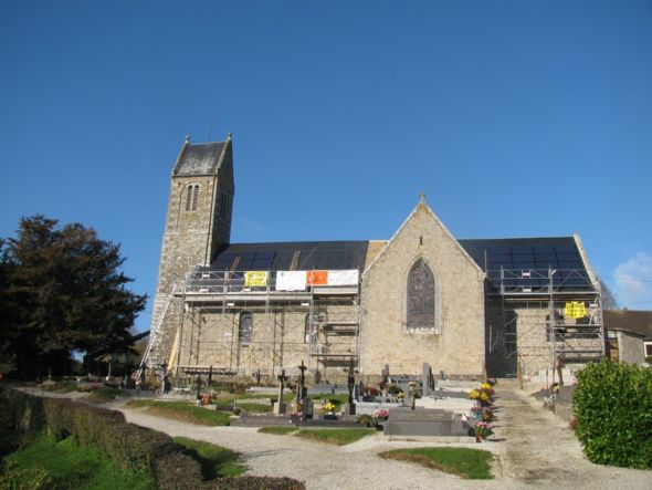 Ici, il s’agit de l’église de Chefresne dans la Manche (ainsi que de la salle municipale). Un village de 300 habitants et une église médiévale qui nécessitait une restauration. « Le financement de cette opération est assuré par un emprunt qui sera remboursé intégralement par la vente de l’électricité produite à EDF », explique le maire Jean-Claude Bossard (Europe Ecologie-Les Verts). « Cette opération doit s’autofinancer. Le projet, qui comprend bien sûr la réfection de la charpente, nous coûtait 130 000 €. Nous avons eu une aide de la Région Basse-Normandie de 15 000 € et on a emprunté le reste sur 20 ans pour un coût total de 161 700 €. Nous avons passé avec EDF un contrat de revente sur 20 ans qui va nous rapporter 195 000 €. À peu près la somme que nous proposait RTE pour ses lignes à très haute tension… En clair, la vente de l’électricité va nous rapporter 9750 € par an, alors que nous remboursons 8085 €». Cette réalisation s’inscrit dans une réflexion plus globale sur le rapport à la production d’électricité dans la région. La commune a ainsi pris clairement position contre la centrale EPR construite dans le nord-Cotentin, en décidant de quitter le réseau EDF (une première pour un village en France) pour se procurer l’énergie chez Enercoop. Elle évite ainsi l’apparition de lignes à haute tension dans son environnement, malgré des subventions très fortes offertes par RTE (197 000 €).