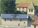 » Les travaux, conçus par le bureau d’études Tout en Solaire, basé à Poisat (38) et réalisés par la société A2G isolation, pour un montant total d’environ 79.000 euros, ont consisté en la reprise de la toiture, à la fixation du système d’intégration et à la pose d’une installation mixte de 12 modules monocristallins de couleur noirs et de modules polycristallins bleus », lit on sur le site présentant les travaux. On notera notamment l’élégante croix bleue teintée dans les verres des panneaux solaires.