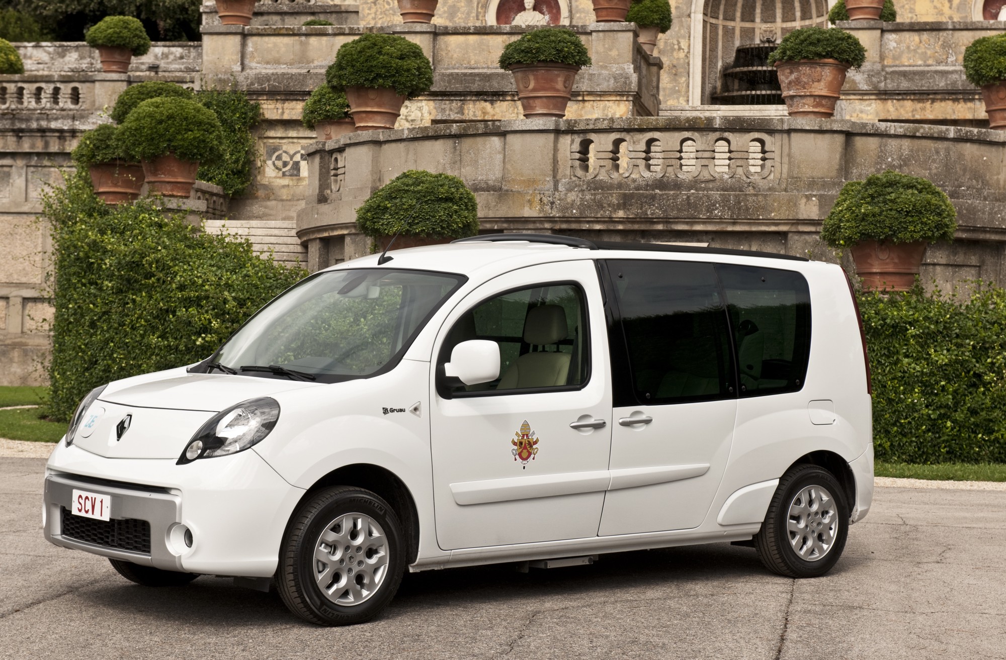 Quelques minutes plus tard, l’hélicoptère s’étant posé, les clés des véhicules ont été remis au Saint Père sous les regards complaisants de quelques caméras bien placées. Puis, Benoît XVI s’étant assis à l’arrière d’une des Kangoo blanche maxi ZE décorée du blason pontifical et spécialement recarrossée par le spécialiste français Gruau, on a pu voir partir au loin le petit véhicule blanc, sans un bruit et sans une émission de particules ou de CO2…