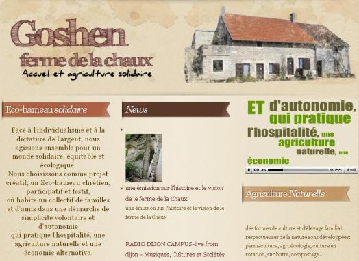 Rencontré par hasard sur le net, le site du hameau de Goshen… Un éco-hameau chrétien participatif et festif, tel qu’il se définit lui-même… Quand on vous dit que ça bouge chez les chrétiens… A découvrir ici.