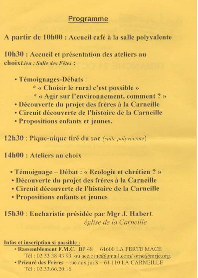Le 21 octobre dernier, trois frères missionnaires des campagnes, le Fr Emmanuel Derkenne, Dominique Poly et Paul Baracetti ont lancé un nouveau projet de maison, orienté autour des questions de la présence en monde rural et de l’écologie chrétienne. Un projet à découvrir et à soutenir. Cela se passe dans l’Orne, à La Carneille (rue aux Juifs, 61110 LA CARNEILLE, Tél. : 02 32 66 20 16)