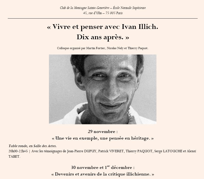Laura me signale ce colloque sur Ivan Illich (1926-2002) qui se déroulera dans quelques jours. Une figure de l’écologie contemporaine à redécouvrir d’urgence. Décédé il y a dix ans, l’homme, autrichien d’origine, était aussi prêtre, philosophe et penseur révolté des crises contemporaines !