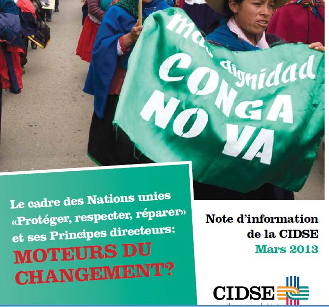 Pour rappeler au monde de l’entreprise que leur responsabilité sociale s’étend aussi sur le droit des personnes au sein des communautés où elles s’implantent, l’alliance internationale d’agences de développement catholiques (CIDSE, dont le CCFD-Terre solidaire fait partie), publie un document ces jours ci pour aider les communautés locales à faire valoir leurs droits dans ce genre de conflits. Occasion de rappeler aussi qu’en juin 2011, le Conseil des Droits de l’homme des Nations unies avait adopté une série de « Principes directeurs » qui devaient accompagner un cadre d’action appelé « Protéger, respecter et réparer ». C’est dans ce cadre que les associations veulent se situer, en faisant connaître d’une part les méfaits et les violations en cours liées à l’implantation d’industries, mais aussi en faisant mieux connaître et donc mieux appliquer les Principes directeurs. Une manière de résister aussi contre la tendance qu’ont bon nombre de gouvernements qui criminalisent la contestation des associations se défendant contre les activités des sociétés multinationales.
