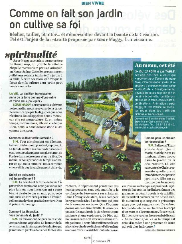 Le blog E&E a déjà évoqué l’installation d’une communauté de soeurs franciscaines auprès de l’étonnante église du Corbusier à Ronchamp. Voilà que parmi les activités de la communauté, on commence à prendre soin de « son » jardin.