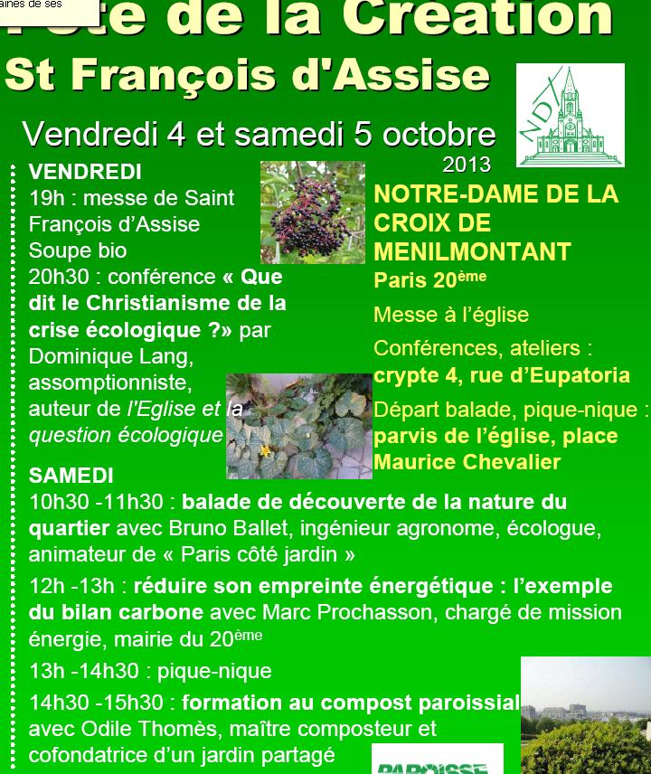 Vous êtes chaleureusement invités, les 4 et 5 octobre à Ménilmontant, à une série d’ateliers, de ballades, de conférences et de temps de prière destinés à vivre plus intensément notre rapport à la nature du quartier et à réduire notre impact individuel et collectif sur la biosphère. Cette proposition célèbre le « temps pour la création »