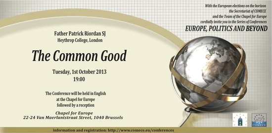 Ce 1er octobre 2013, à 19 h, le sujet abordé par le P. Patrick Riordan sera « Le Bien commun » .