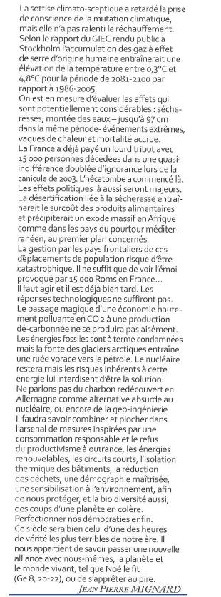 L’édito du dernier numéro de la lettre de Témoignage chrétien (n° 3556) est signé du codirecteur de la rédaction. Son titre ? Climat : l’heure de vérité.