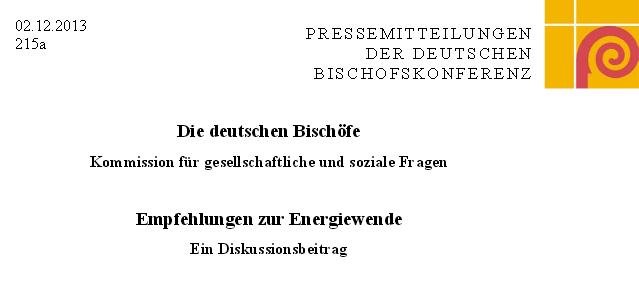 Ces recommandations ont été élaborées par le groupe de travail sur les questions environnementales, présidé par Mgr Bernd Uhl, évêque auxiliaire de Fribourg-en-Brisgau, au sein de la commission chargée des questions sociales et sociétales. Dès mai 2011, un groupe d’experts lié à la conférence épiscopale allemande a publié le document « Responsables de la Création. Suggestions pour un rapport durable à l’énergie », fondé sur des règles de comportement éthique tirées de la doctrine de la Création et présentant la question de l’énergie comme une question de justice à la fois intergénérationnelle, mondiale et environnementale. « Le projet de passer d’une énergie fossile ou nucléaire à des énergies renouvelables est d’une importance exceptionnelle. Mais il n’est pas évident de « tenir » à la fois d’un côté le problème climatique, avec la protection de l’environnement, la réduction de la consommation et l’amélioration de l’efficacité énergétique, sans pour autant négliger de l’autre côté, la rentabilité et l’acceptabilité sociale », soulignait déjà le document.