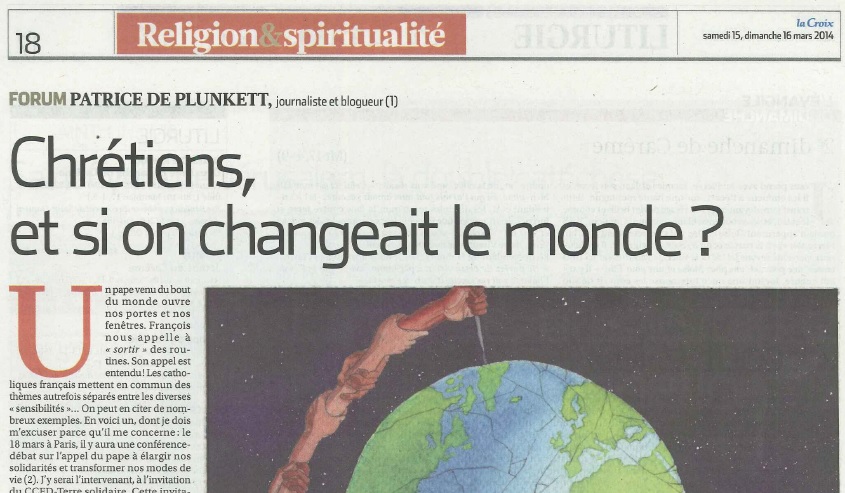 Patrice publie dans le numéro du WE de La Croix une intéressante chronique invitant à travailler à « changer le monde ».