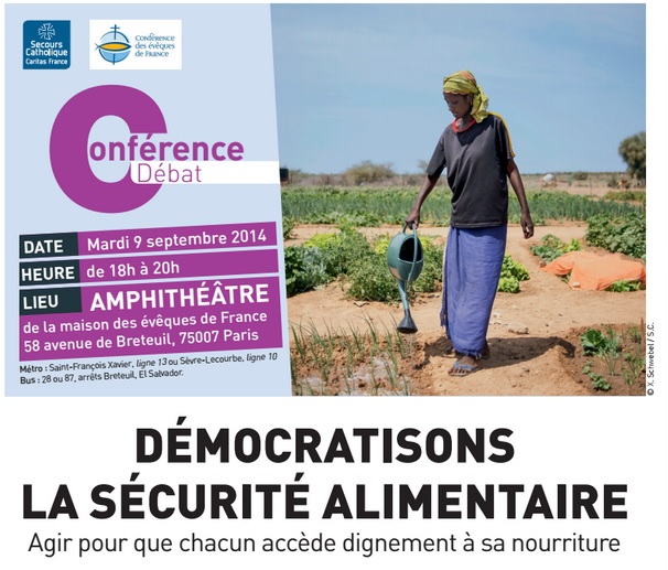Le 9 septembre prochain, de 18 h à 20 h, se déroulera une conférence de presse pour évoquer l’épineuse question de la sécurité alimentaire. Occasion de rappeler l’invitation pressante du pape François lui-même : « Le scandale de millions de personnes qui souffrent de la faim ne doit pas nous paralyser, mais nous motiver, chacun de nous : les célibataires, les familles, les communautés, les institutions, les gouvernements, à éliminer cette injustice. » (à l’occasion du lancement de la campagne mondiale pour le droit à l’alimentation, Rome – 10 décembre 2013)