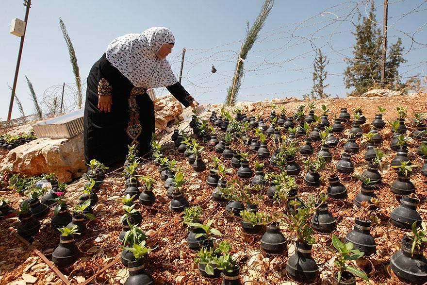 PS : avez-vous dans quoi cette femme palestinienne fait ses plantations, en signe de protestation et d’espérance ?