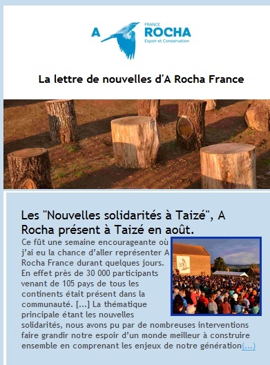 A Rocha à Taizé. Dans la cadre des journées « Nouvelles solidarités » organisées par la communauté oecuménique de Taizé (Saône-et-Loire), Dave Bookless, membre de cette association protestante, a pu faire, le 13 août dernier une présentation du travail sur la biodiversité qu’elle réalise.