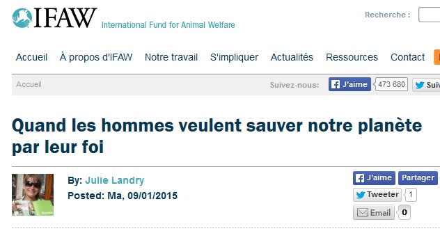 Julie, très engagée au sein de l’association IFAW, qui lutte pour la protection de la vie animale, propose, via le site de l’ONG, une réflexion sur le lien nouveau et renforcé entre le christianisme et le monde naturel.