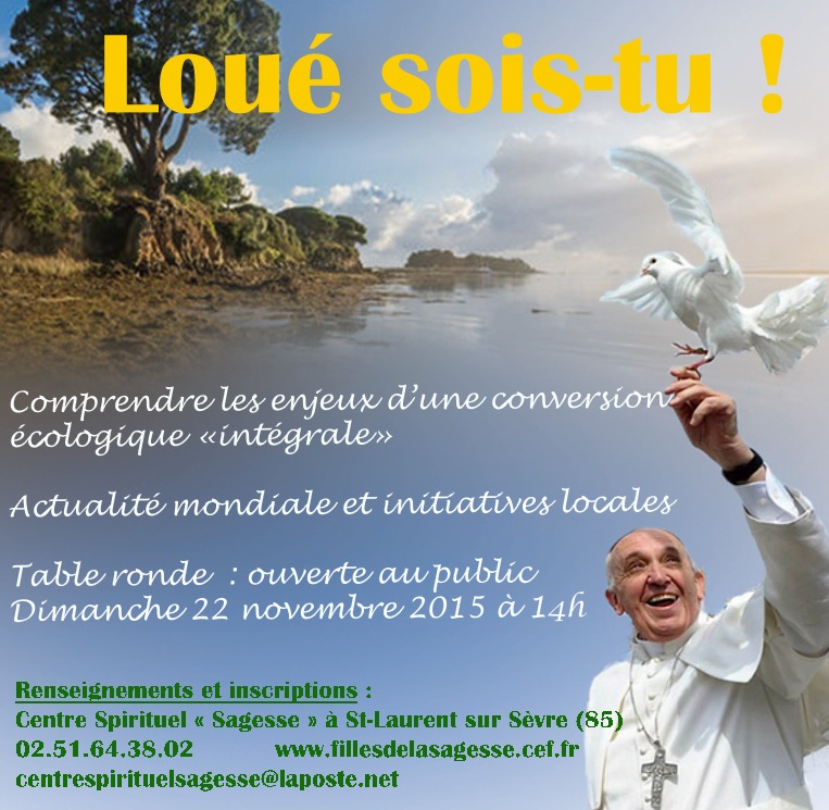 Nathalie me signale ce bon WE de formation à venir en Vendée, à Saint-Laurent-sur-Sèvre (85) , le 21 et 22 novembre prochain, autour de l’encyclique Laudato si. A faire connaitre pour les amateurs du genre.
