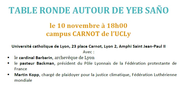 Le cardinal Barbarin, le pasteur Backman et Martin Kopp seront là pour discuter avec Yeb Sano, le 10 novembre à 18 à l’UCLy