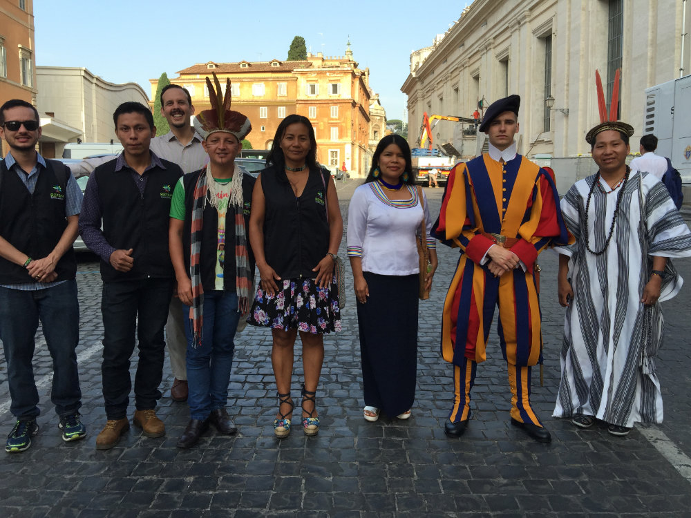 2018 ECOLOGIE Eglises Rencontre Laudato si juillet Amazonian-Indigenous-leaders-with-Swiss-Guard-Rebecca-Elliott Publié par dlang le 16 juillet 2018