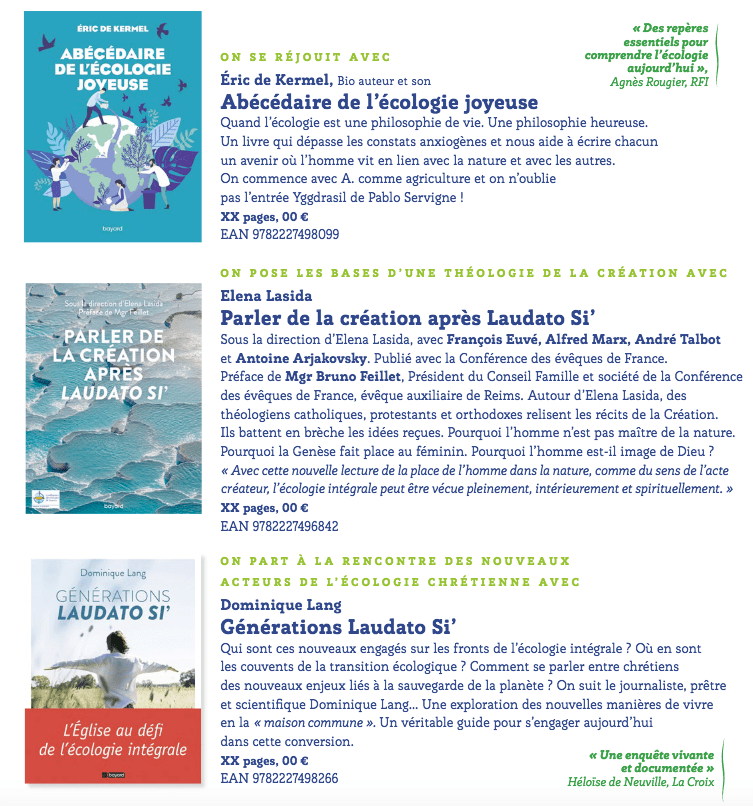 Uncategorized BELLE SAISON – J+3 – Des lectures nourrissantes Publié par dlang le 3 septembre 20202 septembre 2020 Du côté de Bayard, plusieurs publications récentes peuvent accompagner la réflexion et l’action de cette saison de la Création. Partager : Cliquer pour partager sur X(ouvre dans une nouvelle fenêtre) X Cliquez pour partager sur Facebook(ouvre dans une nouvelle fenêtre) Facebook Cliquer pour imprimer(ouvre dans une nouvelle fenêtre) Imprimer Cliquez pour partager sur Pocket(ouvre dans une nouvelle fenêtre) Pocket Cliquez pour partager sur WhatsApp(ouvre dans une nouvelle fenêtre) WhatsApp J’aime chargement… Similaire