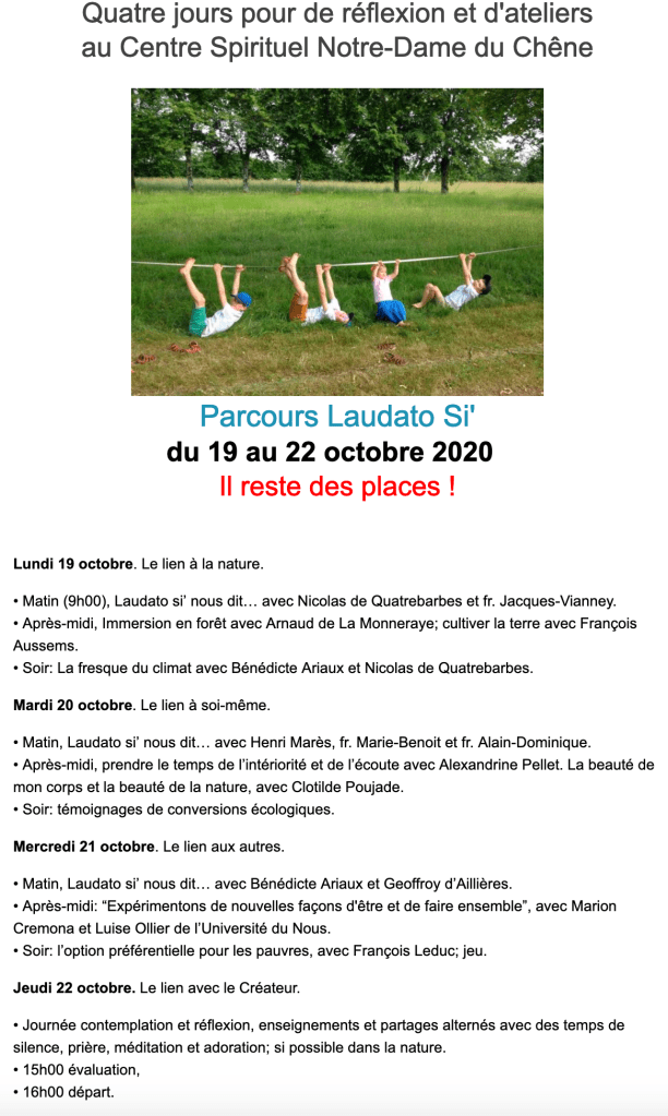 Uncategorized FORMATION – Au pied de mon chêne… Publié par dlang le 12 octobre 2020 Les amis du sanctuaire ND du Chêne poursuivent leur travail de formation. Inscrivez vous vite. Partager : Cliquer pour partager sur X(ouvre dans une nouvelle fenêtre) X Cliquez pour partager sur Facebook(ouvre dans une nouvelle fenêtre) Facebook Cliquer pour imprimer(ouvre dans une nouvelle fenêtre) Imprimer Cliquez pour partager sur Pocket(ouvre dans une nouvelle fenêtre) Pocket Cliquez pour partager sur WhatsApp(ouvre dans une nouvelle fenêtre) WhatsApp J’aime chargement… Similaire