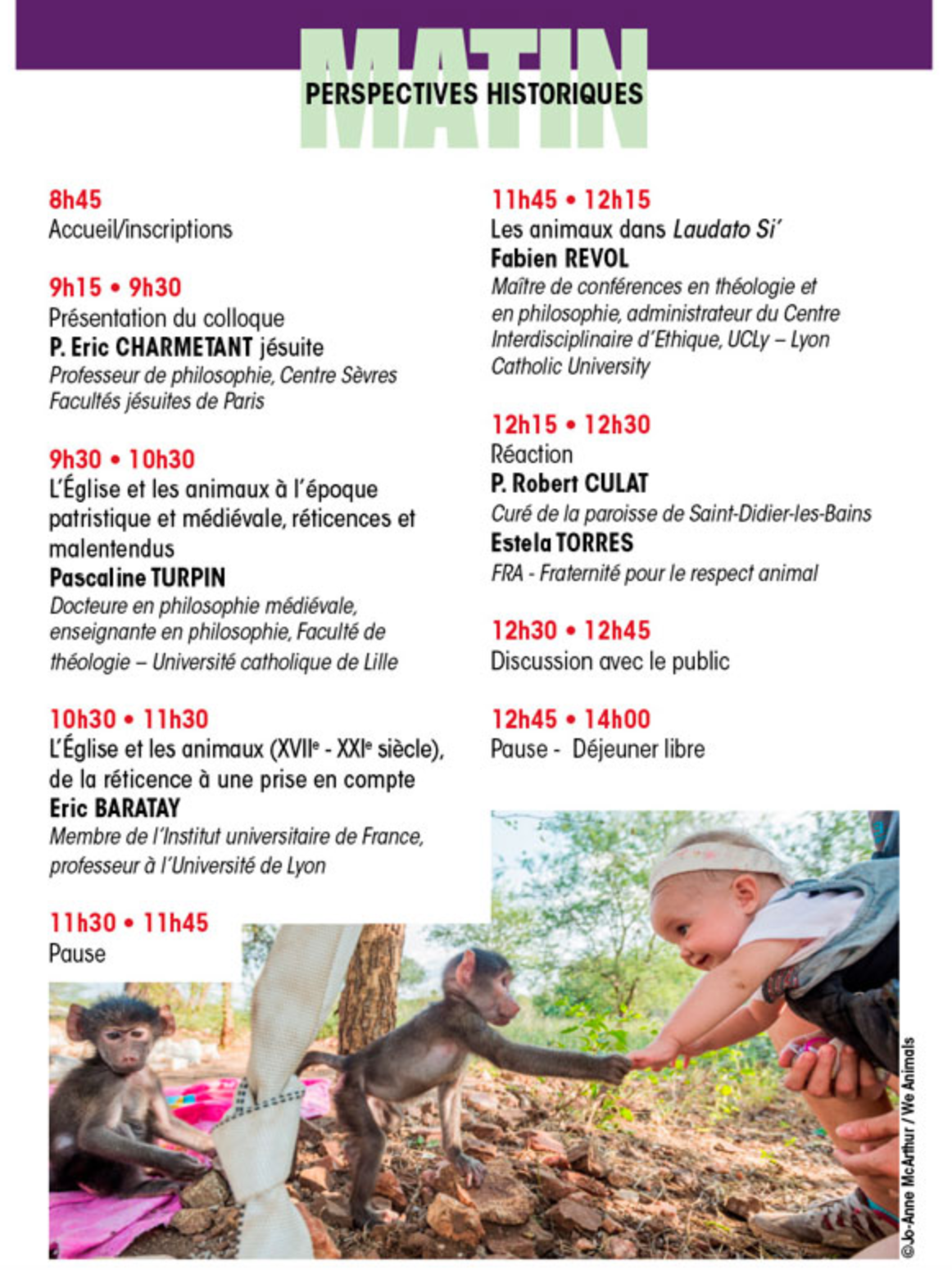Le colloque « les animaux ont-ils leur place dans l’église » s’annonce passionnant. Pourrez-vous, cher Dominique, nous communiquer le texte de votre intervention du 23 janvier et nous tenir au courant de la publication des actes de ce colloque le moment venu ?