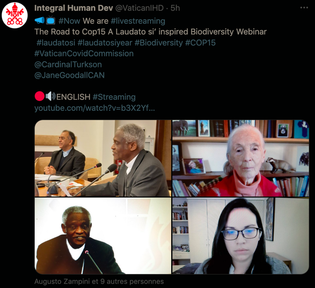 Ce mardi 20 avril, une intéressante rencontre en visio s’est déroulée à Rome, sous l’égide du Dicastère pour le Développement humain pour préparer et accompagner le prochain RV de la COP15 dédié à la question urgente de la biodiversité.