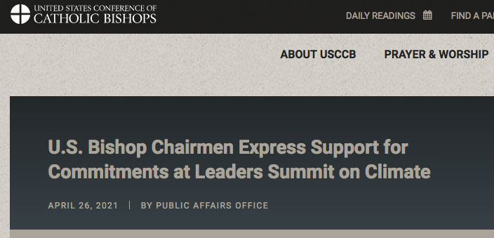 Et pour info, voici les déclarations précédentes des évêques américains sur la gestion de la crise climatique