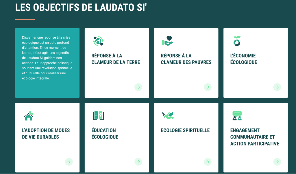 Laudato Si’. Vous êtes invités à choisir les actions qui correspondent le mieux à vos priorités et à vos besoins.Vous êtes l’expert de votre institution, de votre communauté ou de votre famille, et vous savez quelles actions sont les meilleures pour vous. Prises ensemble, ces actions représentent un parcours de transformation dans l’esprit holistique de Laudato Si’