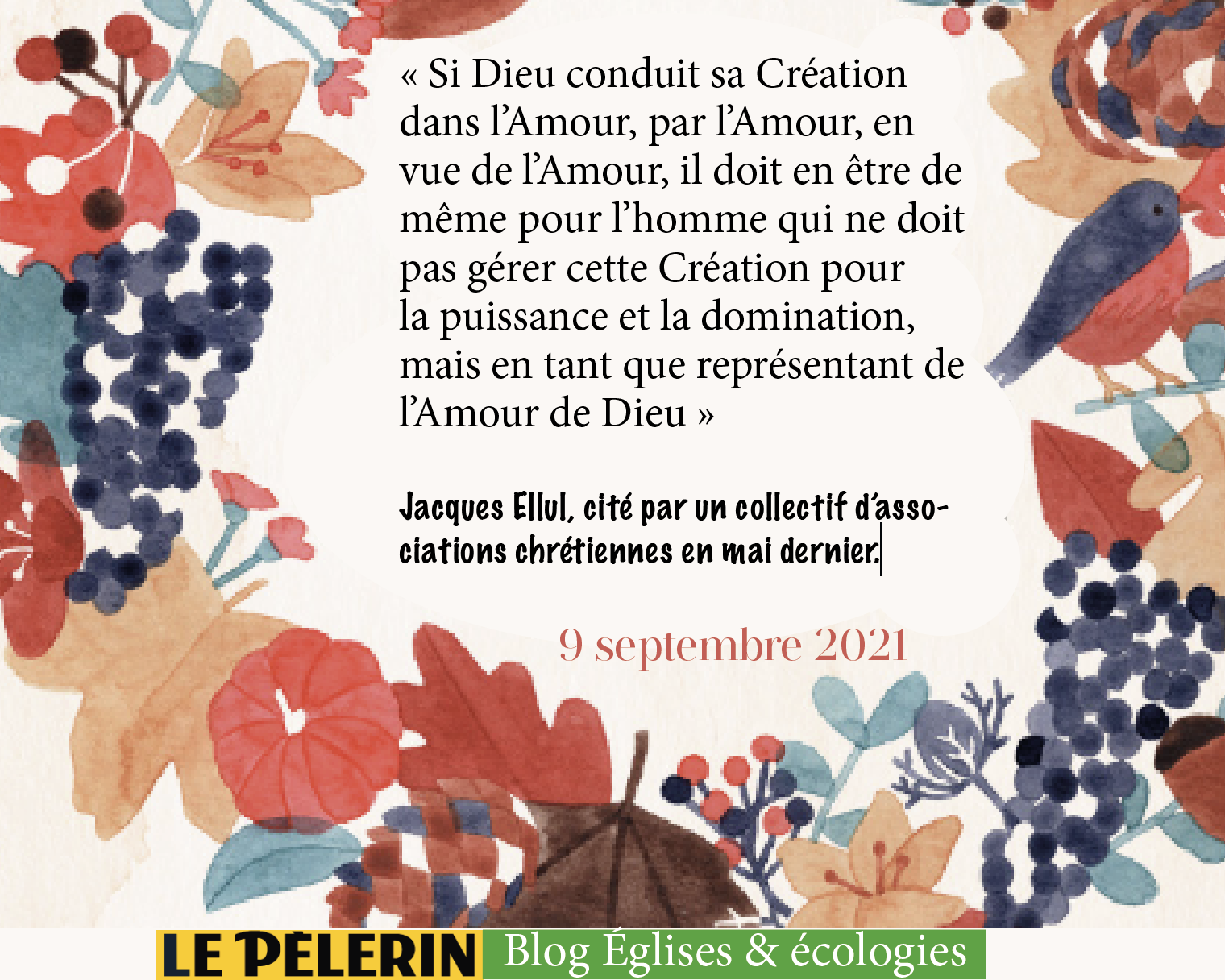 Mois de prière pour la Création MOIS DE LA CRÉATION – Méditation 9 Publié par dlang le 9 septembre 20216 septembre 2021 Partager : Partager sur X(ouvre dans une nouvelle fenêtre) X Partager sur Facebook(ouvre dans une nouvelle fenêtre) Facebook Imprimer(ouvre dans une nouvelle fenêtre) Imprimer Partager sur WhatsApp(ouvre dans une nouvelle fenêtre) WhatsApp J’aime chargement… Similaire