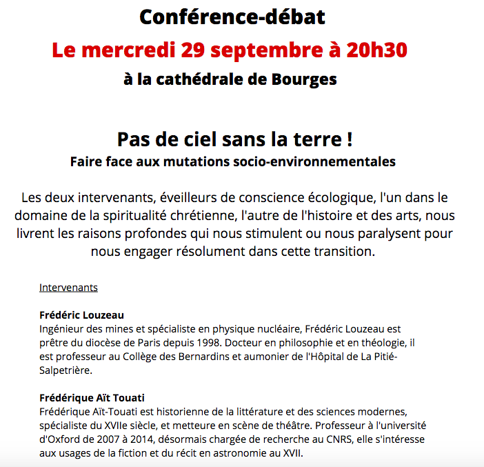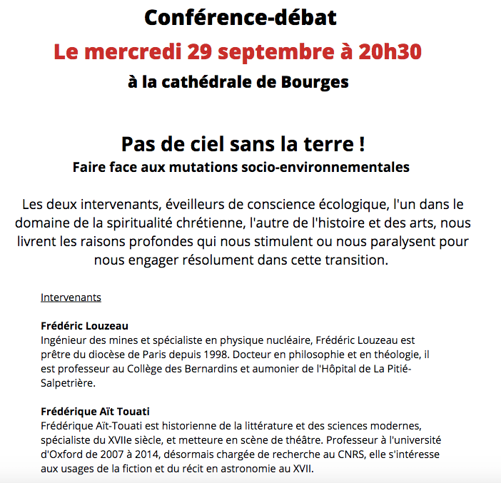 Conférence-débat avec Frédéric Louzeau et Frédérique Aït Touati, mercredi 29 septembre