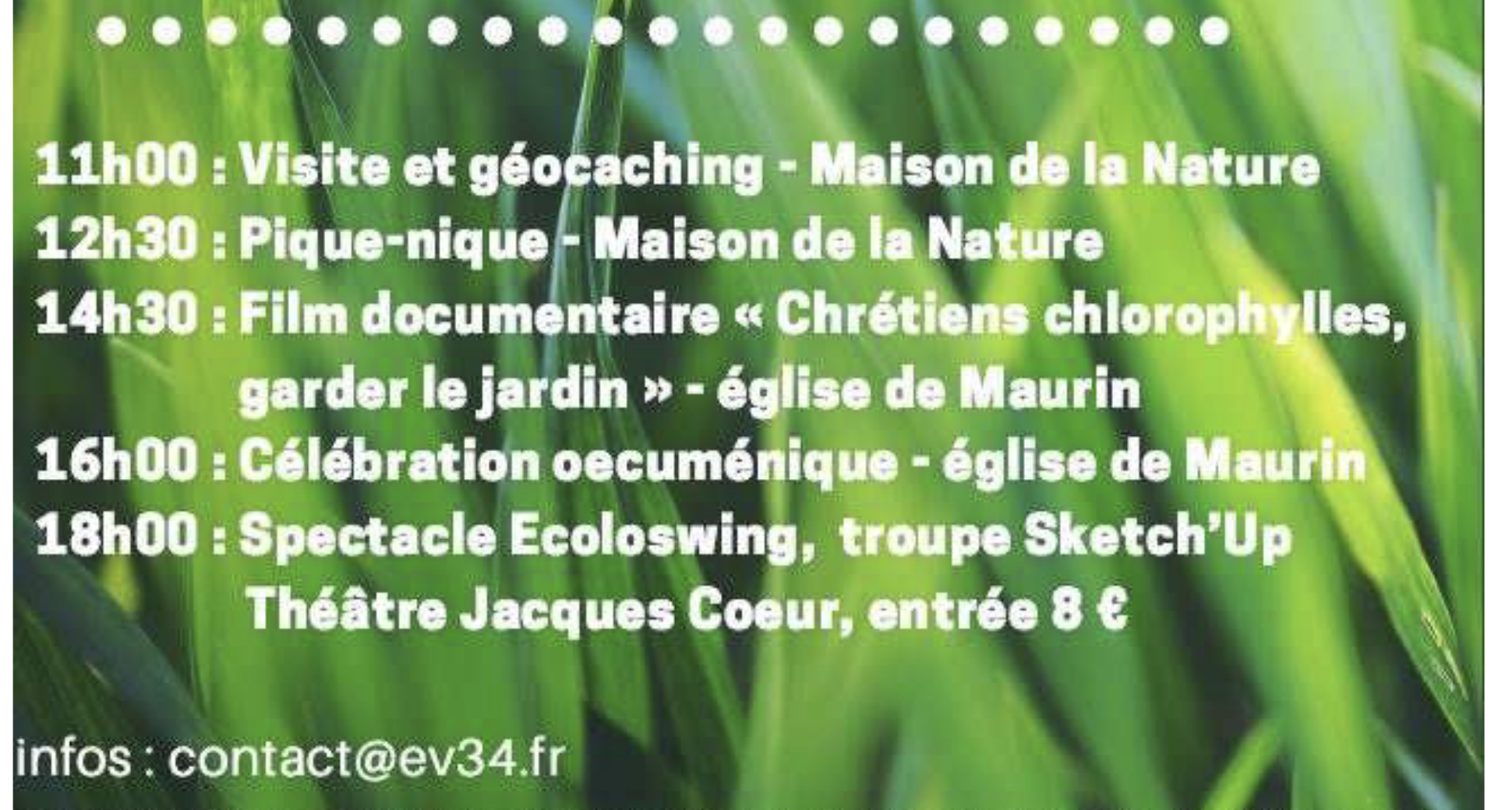 L’ami Pierre me signale la prochaine journée de la Création, en clôture de ce mois de prière, dans la région de Montpellier. Une belle démarche oecuménique !