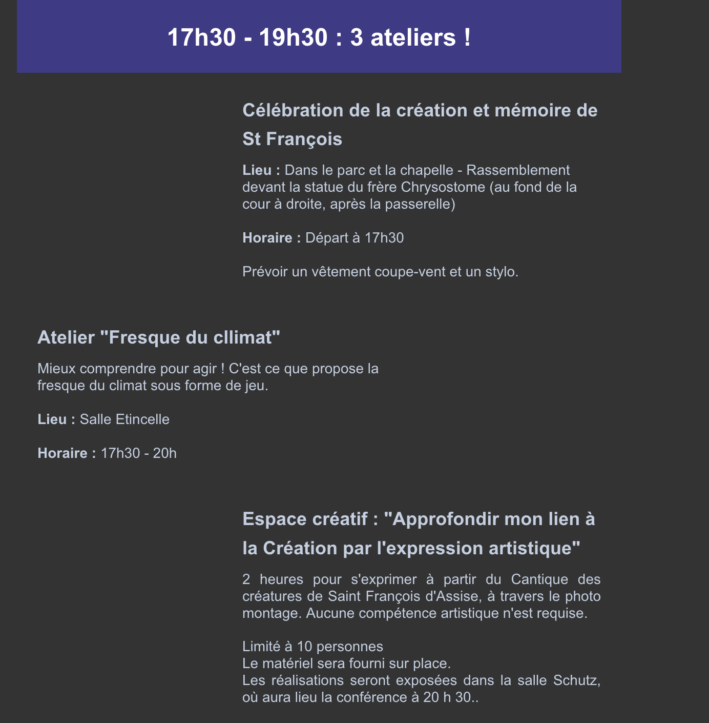 L’amie Florence me signale une belle soirée à l’occasion de la Saint François d’Assise à Angers, avec les soeurs franciscaines de l’Esvière, Fondacio et la Frat franciscaine locale.