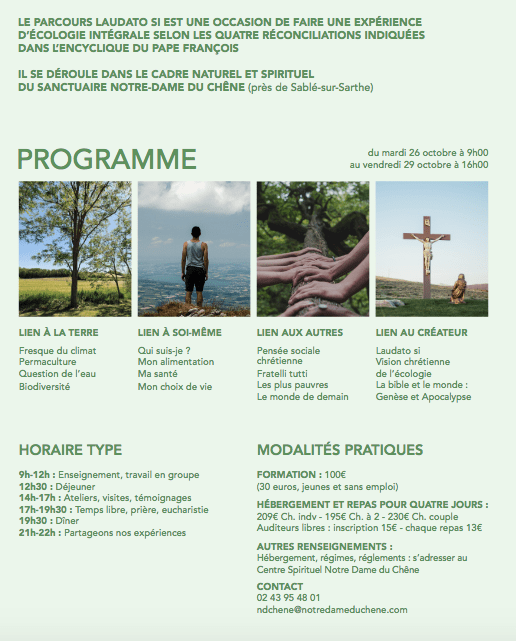 L’ami Marie Benoit me signale une formation menée par l’Académie de l’écologie intégrale sous la forme d’un séjour du 26 au 29 octobre à Notre Dame du Chêne à Vion (Sarthe)