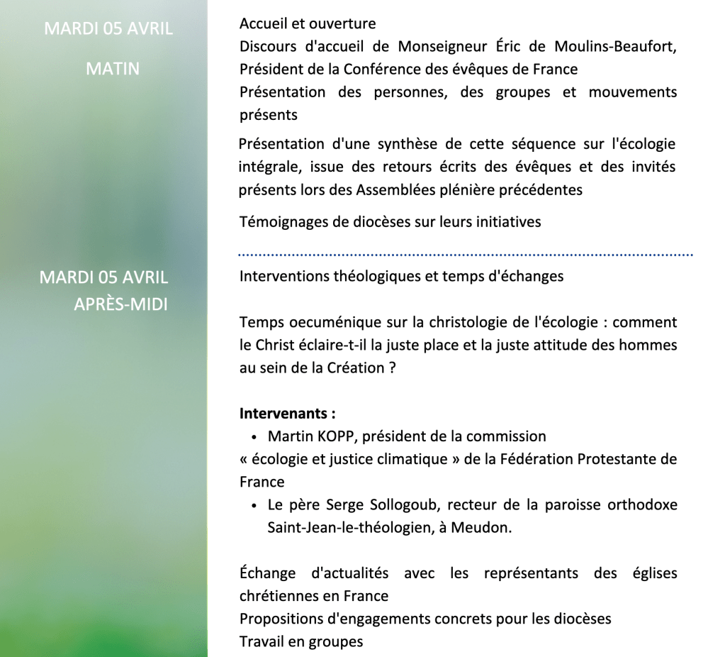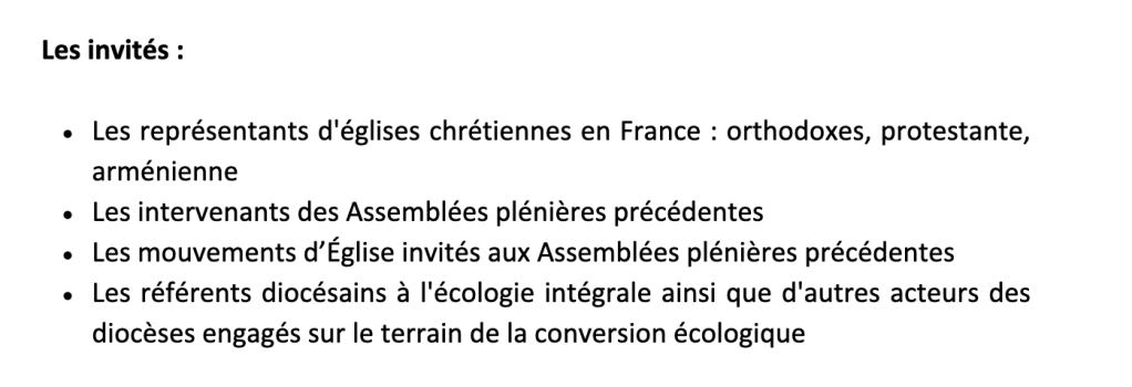 Voici ce qui est annoncé dans le dossier de presse pour ce rassemblement. Il faudra voir si, pour une fois, ce genre de texte officiel qui sera publié à la fin de ce temps de mobilisation arrivera à diffuser pour de bon dans le tissu paroissial. Il faut l’espérer, puisque le label Eglise verte a déjà beaucoup ouvert de pistes sur le terrain. Reste à espérer aussi que les évêques vont continuer à se mobiliser personnellement sur ce sujet. A suivre donc.