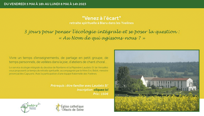 Christine me signale une belle initiative de la « pépinière Laudato si » du diocèse de Versailles : une retraite spirituelle début mai, autour du texte du pape François.