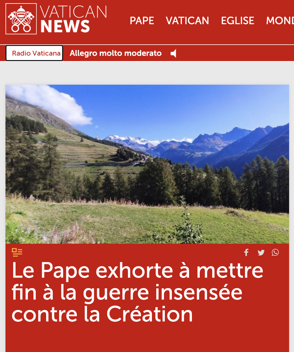 (4) Pape François, message pour la Journée mondiale de prière pour la sauvegarde de la création, 21 juillet 2022.