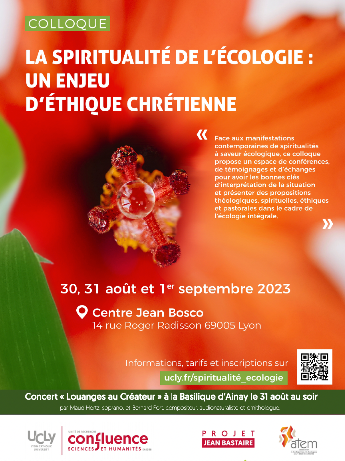 Un nouveau colloque à venir du côté de l’Université catholique de Lyon et son pole 5 « Développement intégral, écologie, éthique ». Son thème ? La spiritualité de l’écologie, un enjeu d’éthique chrétienne.