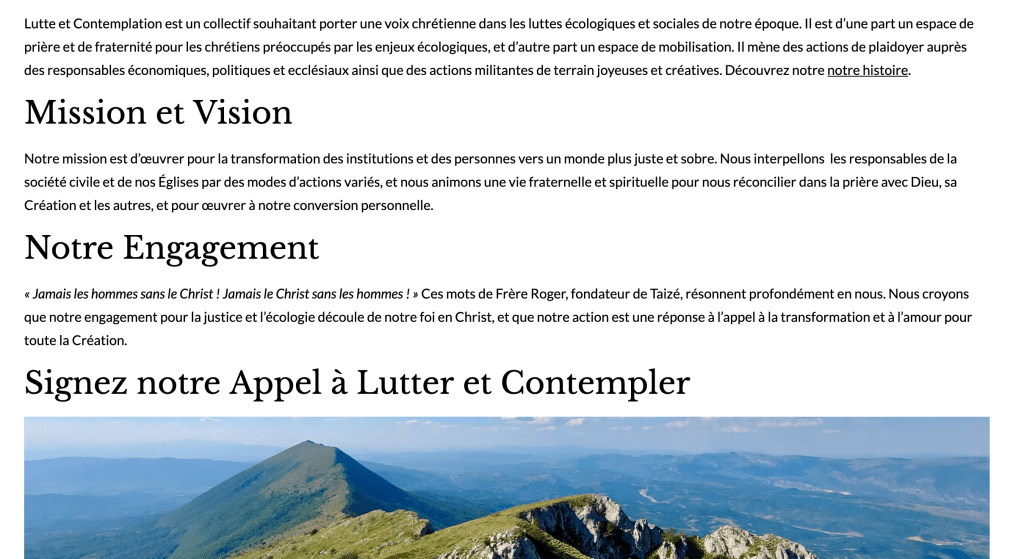 Après quelques réunions et actions, a émergé l’idée d’une structure qui permettrait de rassembler des chrétien·nes souhaitant articuler vie spirituelle et engagement dans les luttes écologiques. L’idée est que ce collectif initie des actions d’interpellation des responsables ecclésiastiques et politiques sur les enjeux climatiques et environnementaux (notamment sur le désinvestissement des énergies fossiles), lance des actions antipub… mais aussi propose des temps de prière et de méditation, d’approfondissement de la pensée de tel ou tel auteur·e ou théologien·ne…