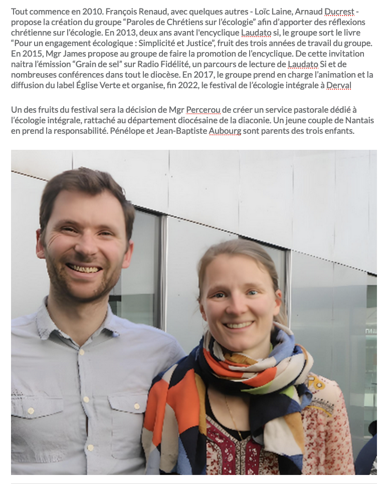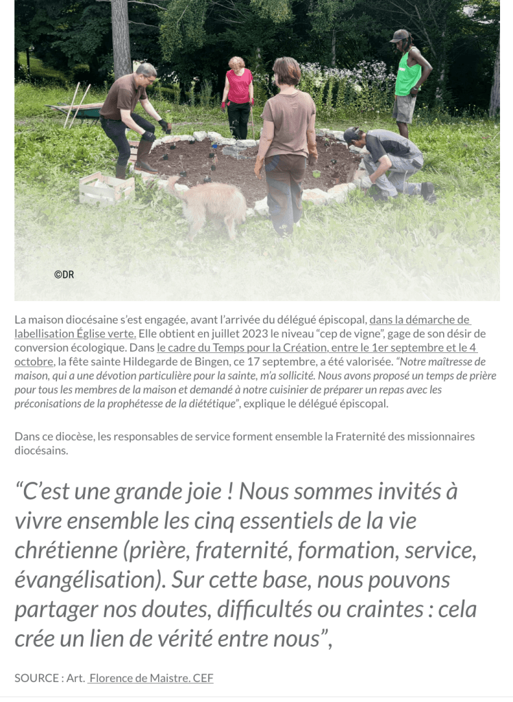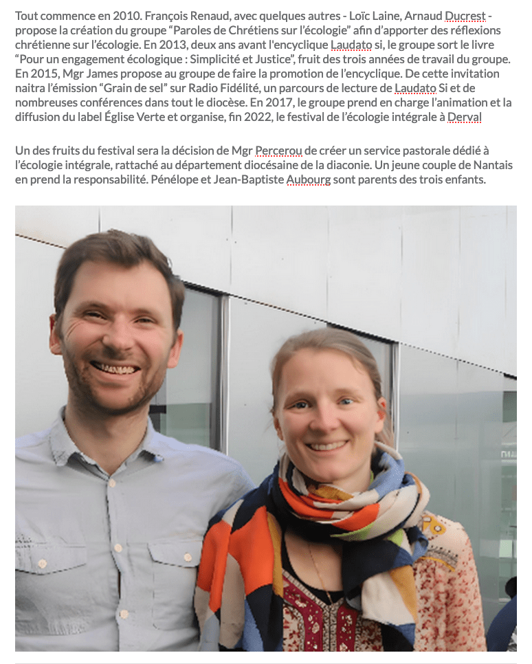 Délégation diocésaine : https://www.vannes.catholique.fr/un-referent-a-lecologie-integrale-pour-notre-diocese/