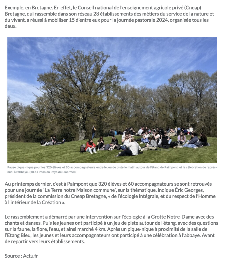 Et si les écoles agricoles privées accueillaient, elles aussi, les appels de l’écologie intégrale ? Ce n’est plus un voeu pieux. (Art. E&E Sept 2024)