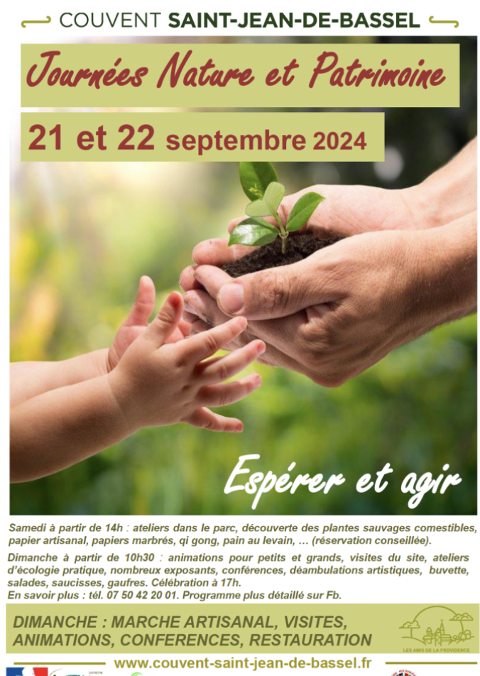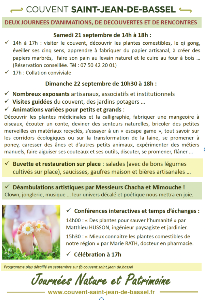 LA FÊTE SE PRÉPARE ACTIVEMENT À SAINT-JEAN-DE-BASSEL. LE 21 et 22 SEPTEMBRE PROCHAIN, CE SONT LES JOURNÉES NATURE ET PATRIMOINE QUI SONT CÉLÉBRÉES. Occasion de découvrir ce couvent dans la région de Sarrebourg qui vit, depuis plusieurs années, une dynamique de transition sociale, écologique, culturelle. (Art. E&E Sept 2024)